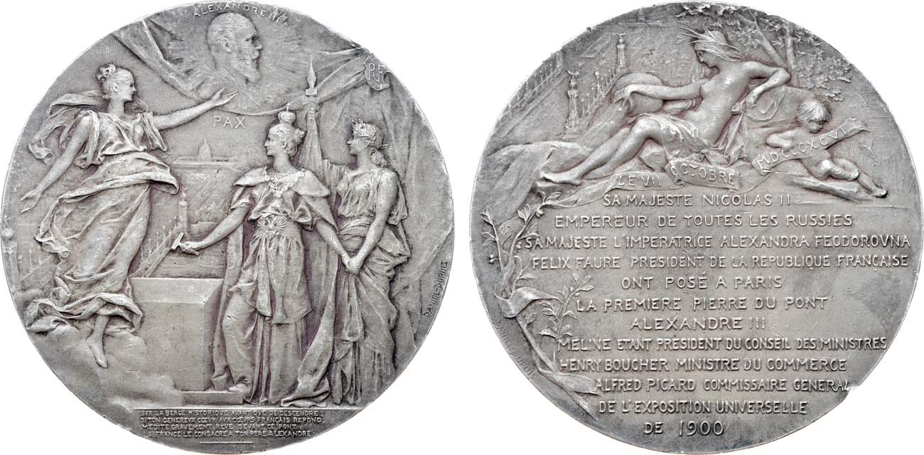 Серебро. 167,33г. Диаметр 69 мм. Франция. Парижский монетный двор. Медальер Ж.Б. Даниель-Дюпюи. Аверс: справа на поле "DANIEL-DUPUIS". Реверс: слева внизу на поле "DANIEL-DUPUIS". На гурте клеймо Парижского монетного двора с 1.1.1880 г. ("рог изобилия") и название металла: «ARGENT» Дьяков 1320.1(R2). UNC.