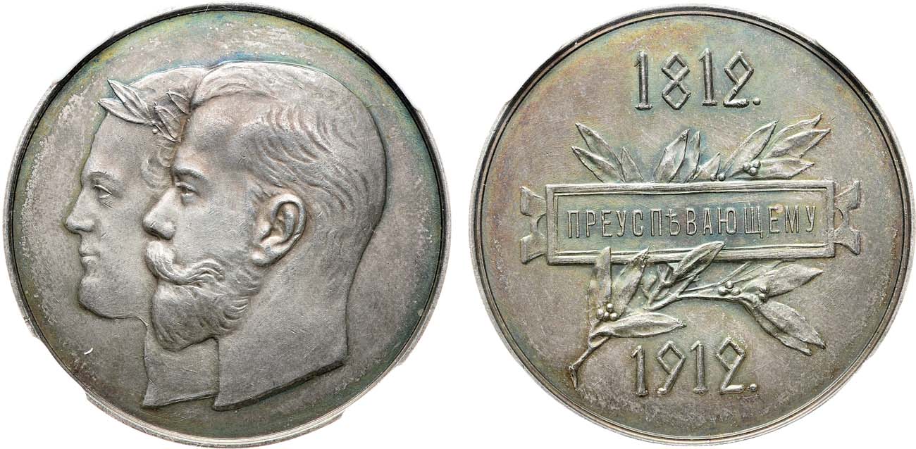 Отборный коллекционный экземпляр. Бархатистый штемпельный блеск. Великолепный рельеф. Насыщенная серая кабинетная патина с многоцветными переливами по контурам рельефа изображения. Редка.
