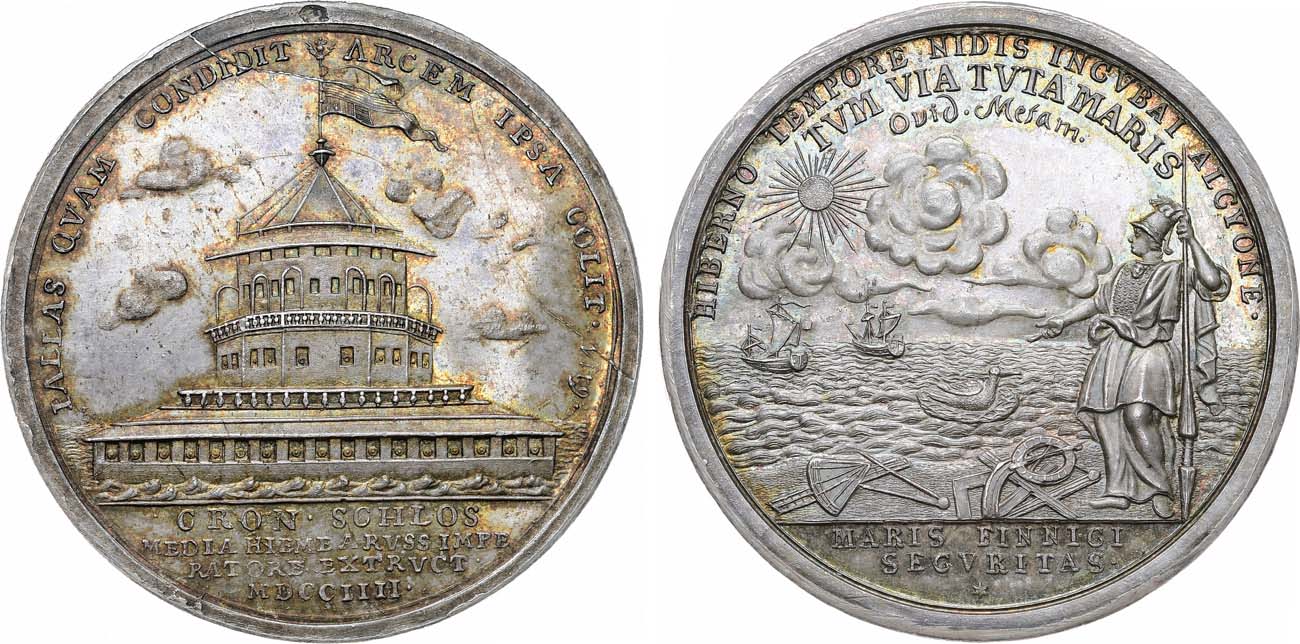 Серебро. 52,16г. Диаметр 46 мм. Санкт-Петербургский монетный двор. Из серии медалей на события северной войны. Медальер Т. Иванов (без подписи). копия штемпеля Ф.Г. Мюллера. Смирнов 170/а. Дьяков 19.2(R1). MS 64.