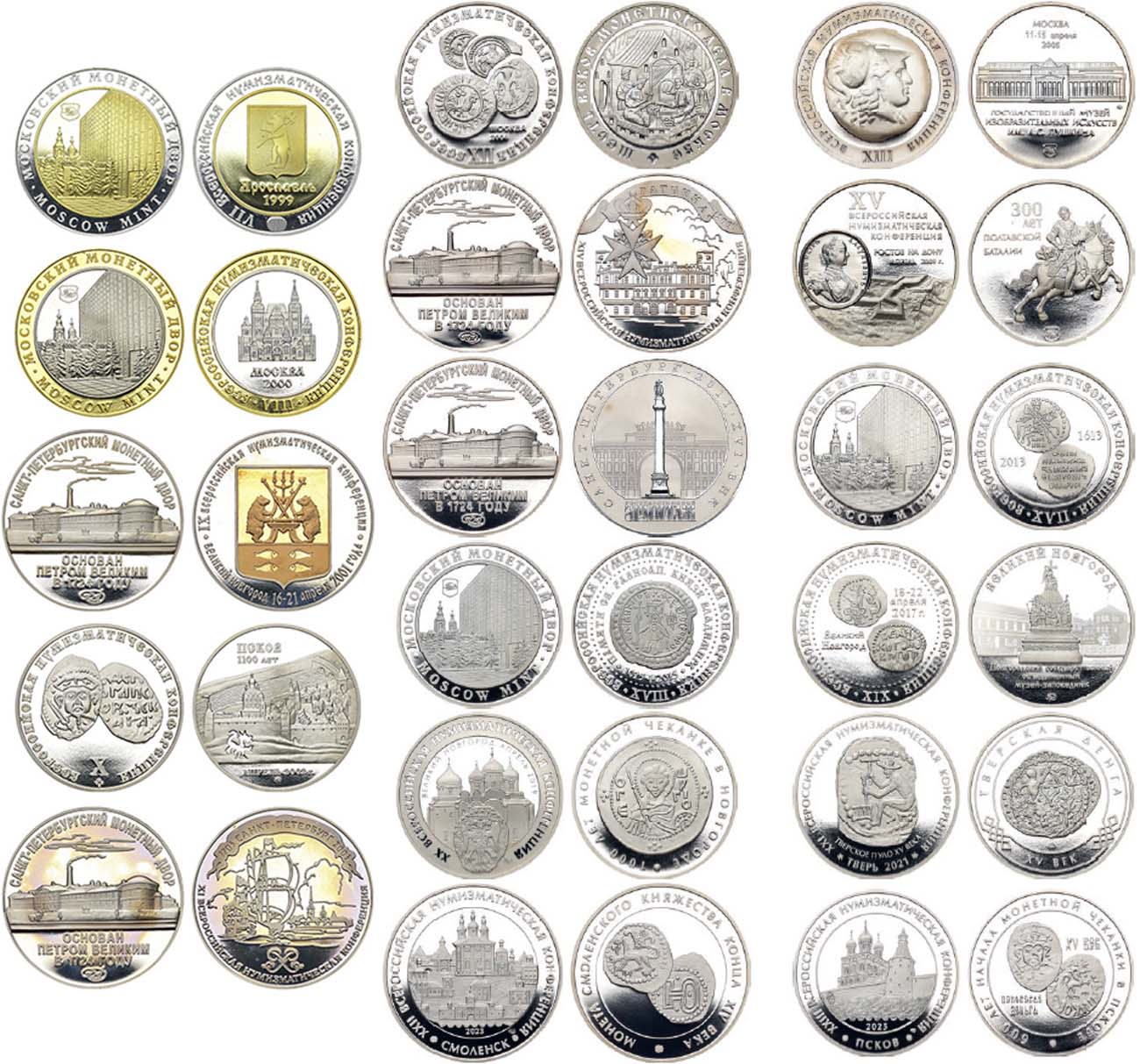 Медно-никелевый сплав. Медаль 1999 года. Диаметр 38 мм. ММД. ВНК VII. Ярославль. Биметалл. BU. Медаль 2000 года. Диаметр 38 мм. ММД. ВНК VIII . Москва. Биметалл. BU. Медаль 2001 года. Диаметр 42 мм. СПМД. ВНК IX. Великий Новгород. Биметалл. BU. Медаль 2002 года. Диаметр 38 мм. ММД. ВНК X. Псков. BU. Медаль 2003 года. Диаметр 42 мм. СПМД. ВНК XI. Санкт-Петербург. BU. Медаль 2004 года. Диаметр 38 мм. ММД. ВНК XII. Москва. BU. Медаль 2005 года. Диаметр 38 мм. ММД. ВНК XIII. Москва. BU. Медаль 2007 года. Диаметр 42 мм. СПМД. ВНК XIV. Гатчина. BU. Медаль 2009 года. Диаметр 38 мм. ММД. ВНК XV. Ростов-на-Дону. BU. Медаль 2011 года. Диаметр 42 мм. СПМД. ВНК XVI. Санкт-Петербург. BU. Медаль 2013 года. Диаметр 38 мм. ММД. ВНК XVII. Москва. BU. Медаль 2015 года. Диаметр 38 мм. ММД. ВНК XVIII. Москва. BU. Медаль 2017 года. Диаметр 38 мм. ММД. ВНК XIX. Великий Новгород. BU. Медаль 2019 года. Диаметр 38 мм. ММД. ВНК XX. Великий Новгород. BU. Медаль 2021 года. Диаметр 39 мм. ММД. ВНК XXI. Тверь. BU. Медаль 2023 года. Диаметр 42 мм. СПМД. ВНК XXII. Смоленск. BU. Медаль 2025 года. Диаметр 39 мм. СПМД. ВНК XXIII Псков. BU.