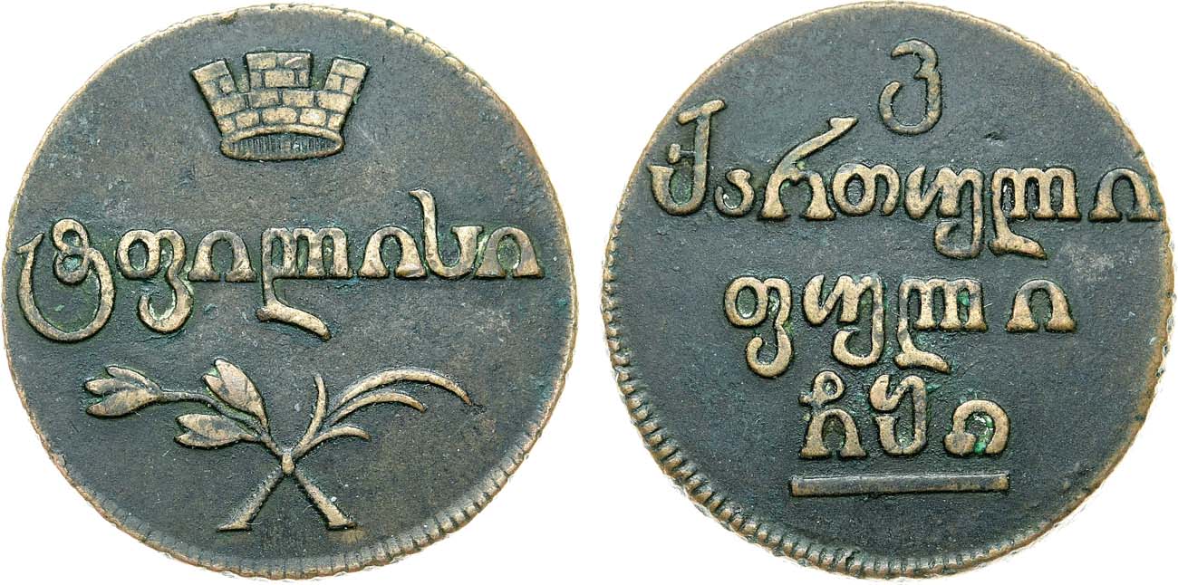 Медь. 15,48г. Для Грузии. Тифлисский монетный двор. Тираж: 314.900 экз. Уздеников 4384. Биткин 790. 2 рубля по Петрову. 1 рубль по Ильину. XF.