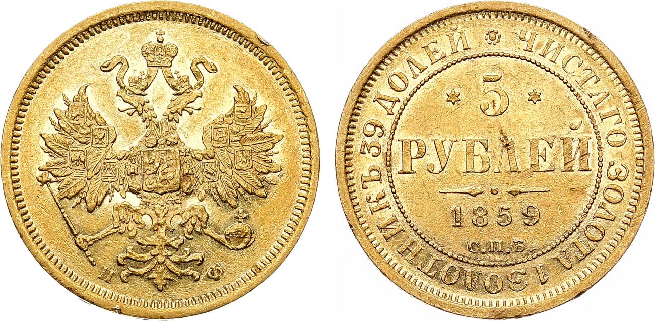 5 рублей 1859 года встречаются очень редко.