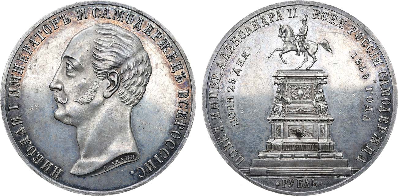 Памятные рубли по случаю открытия монумента императору Николаю I в Санкт-Петербурге с выпуклым чеканом встречаются значительно реже, чем с плоским.