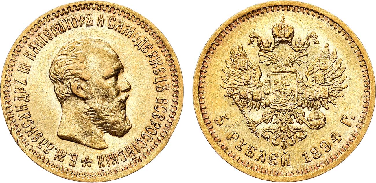 5 рублей 1894 года встречаются редко. Ранее была в слабе PCGS с оценкой сохранности AU 58 (с оригинальной биркой).