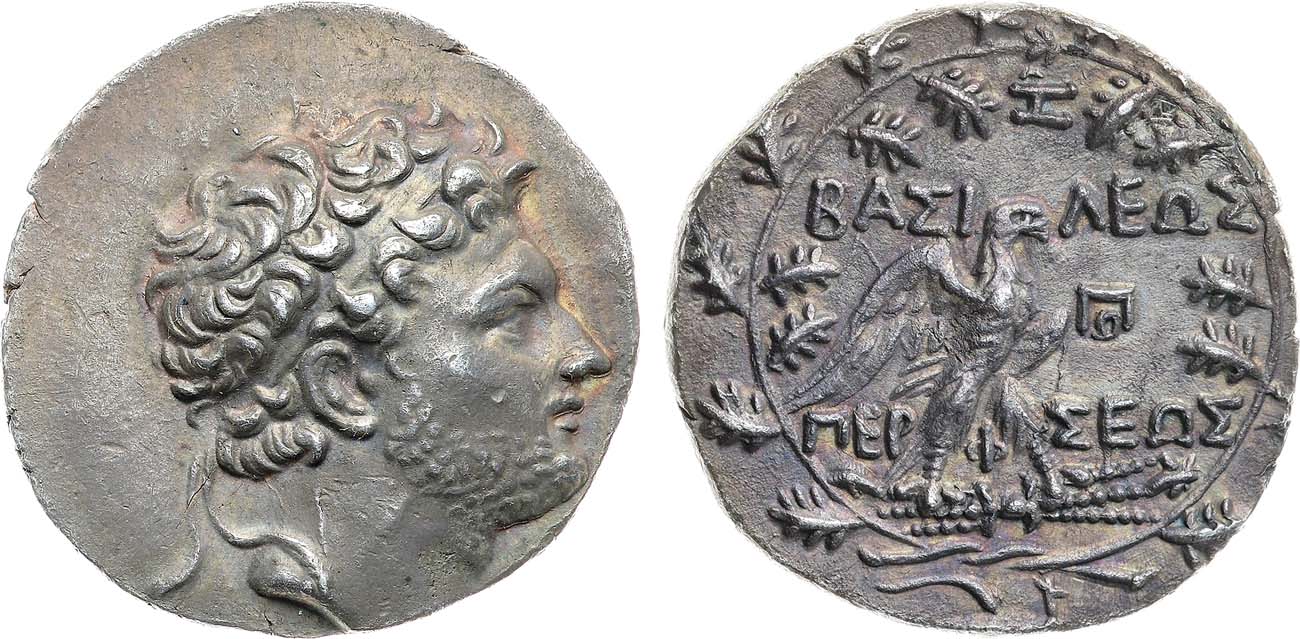 Серебро. 16,58г. Амфиполь. Аверс: изображение головы Персея в диадеме - вправо. Реверс: легенда "ΒΑΣΙΛΕΩΣ ΠΕPΣΕΩΣ"; изображение орла на молнии с распростертыми крыльями - в дубовом венке. HGCS. 3/11091 (R2). AU.