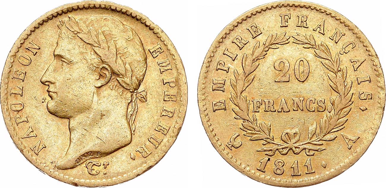 Золото. 6,41г. Париж (А). Тираж 3705000 экз. KM 695. Le Franc 516.16. XF.