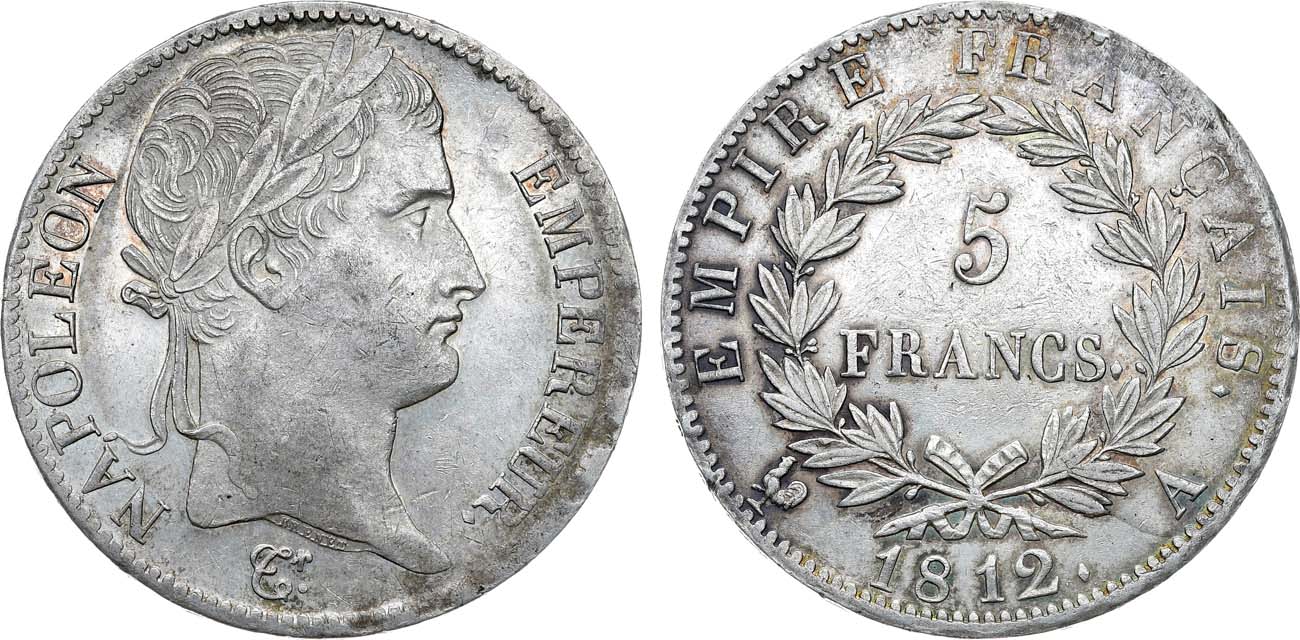 Серебро. 25,52г. Париж (А). Медальеры Пьер Жозеф Тиолье (монограмма "Tr" курсивом в нижней части поля аверса) и Николя-Гай Брене ("BRENET" - в обрезе рельефа шеи на аверсе). Минцмейстер Луи Теофиль-Франсуа Лепаж (реверс - изображение кадуцея в нижней части монеты). KM 694.1. Le Franc 307.41. AU/UNC.
