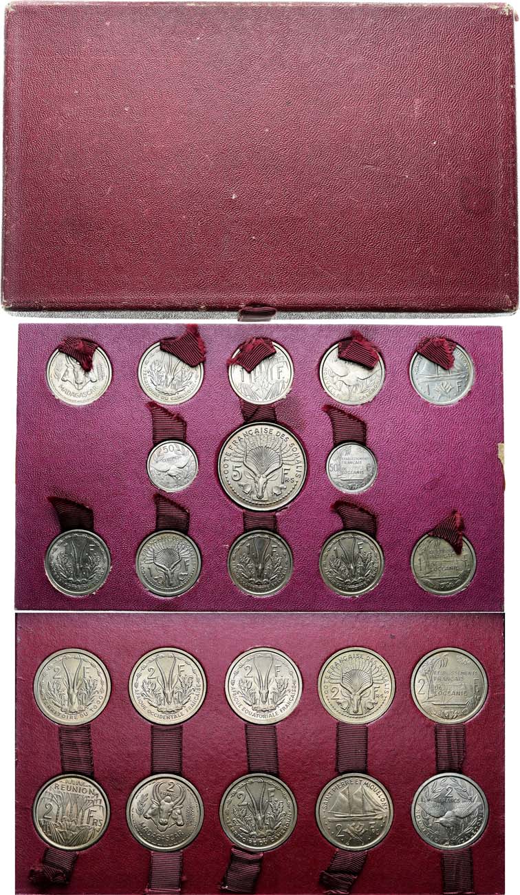 Медно-никелевый сплав. Сомали. 5 франков 1948 года. ESSAI. KM E3. Сомали. 2 франков 1948 года. ESSAI. KM E2. Сомали. 1 франк 1948 года. ESSAI. KM E1. Экваториальная Африка. 2 франка 1948 года. ESSAI. KM E2. Экваториальная Африка. 1 франк 1948 года. ESSAI. KM E1. Западная Африка. 2 франка 1948 года. ESSAI. KM E2. Западная Африка. 1 франк 1948 года. ESSAI. KM E1. Того. 2 франка 1948 года. ESSAI. KM E2. Того. 1 франк 1948 года. ESSAI. KM E1. Реюньон. 2 франка 1948 года. ESSAI. KM E4. Реюньон. 1 франк 1948 года. ESSAI. KM E3. Мадагаскар. 2 франка 1948 года. ESSAI. KM E2. Мадагаскар. 1 франк 1948 года. ESSAI. KM E1. Камерун. 2 франка 1948 года. ESSAI. KM E6. Камерун. 1 франк 1948 года. ESSAI. KM E5. Сен-Пьер и Микелон. 2 франка 1948 года. ESSAI. KM E2а. Сен-Пьер и Микелон. 1 франк 1948 года. ESSAI. KM E1а. Новая Каледония. 2 франка 1949 года. ESSAI. KM E9. Новая Каледония. 1 франк 1949 года. ESSAI. KM E8. Новая Каледония. 50 сантимов 1949 года. ESSAI. KM E7. Океания. 2 франка 1949 года. ESSAI. KM E9. Океания. 1 франк 1949 года. ESSAI. KM E8. Океания. 50 сантимов 1949 года. ESSAI. Медно-никелевый сплав. KM T7. UNC. UNC.