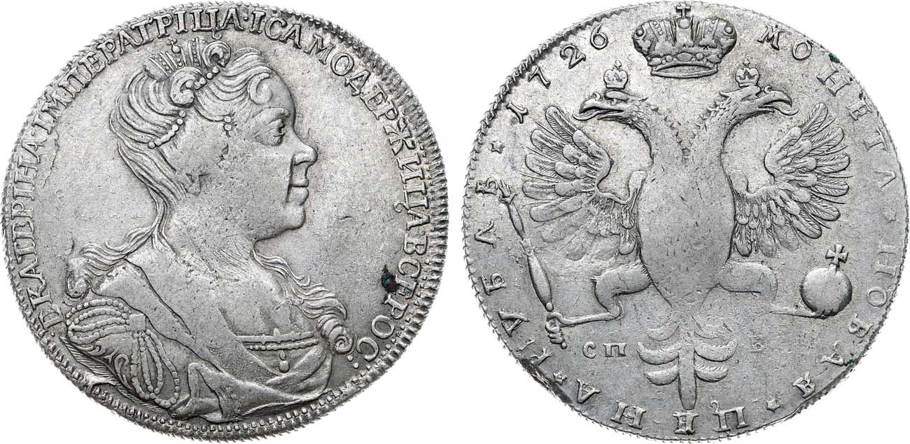Относится к группе редких типовых рублей, отчеканенных в период правления императрицы Екатерины I.