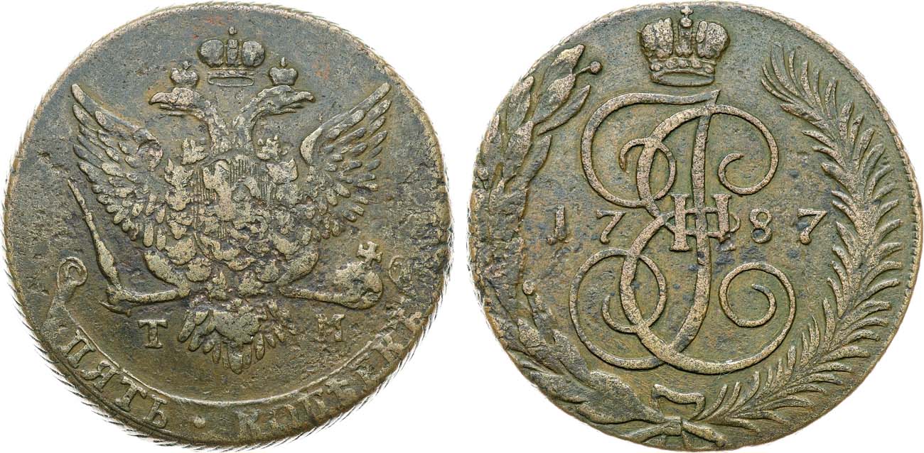 Медь. 50,78г. Таврический монетный двор. Аверс: буквы "ТМ" больше. Гурт шнуровидный. Уздеников 2782(–). Биткин 854(R1). 9 рублей по Петрову. 10 рублей по Ильину. Дьяков 162, 565(R2). Brekke 121, 265(–). XF 40.