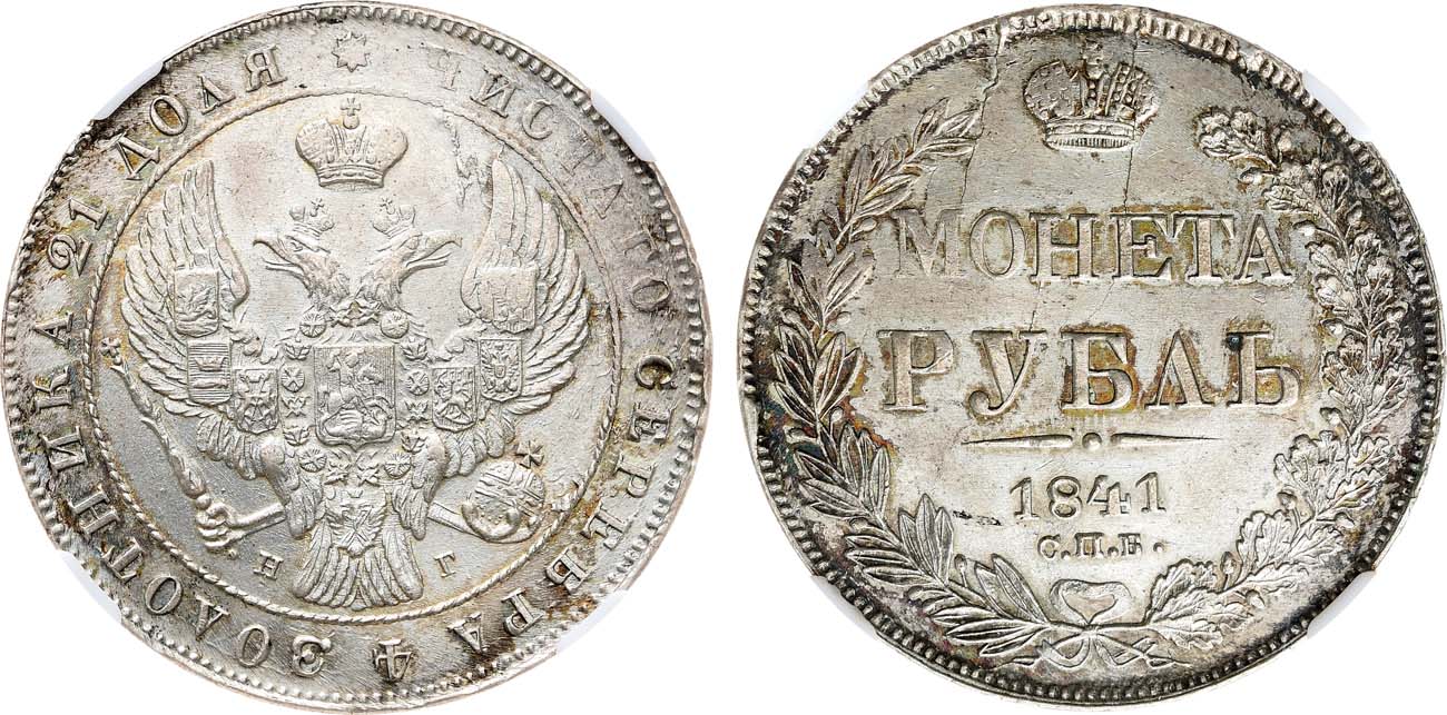 Серебро. Аверс: орёл образца 1841 года. Уздеников 1598. Биткин 192. MS 62.