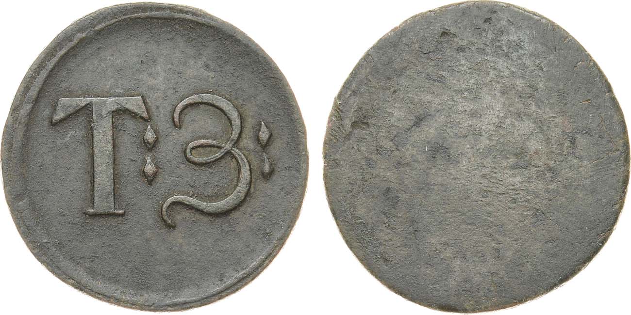 Медь. 5,87г. Диаметр 26 мм. Сузунский монетный двор. Односторонняя. Аверс: "Т:З:" в рамке. Григорьев, Черноухов 1188(÷). XF+/AU.