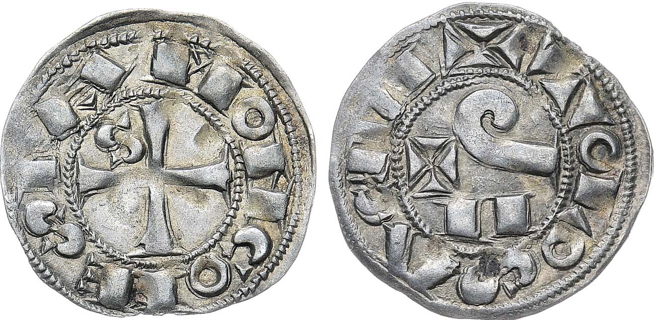 Серебро. 1,07г. Тулуза. Аверс: крест с монограммой "S" внутри окружности; легенда "+ RAMON COMES". Реверс: монограмма "PAX" внутри окружности; легенда "+ TOLOSA CIVI". Dy fеodales 1228. MS 61.