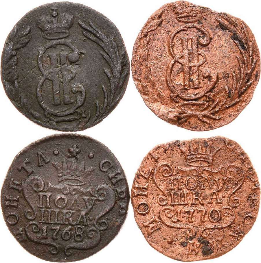 Медь. Полушка 1768 года. КМ.1,74 г. Полушка 1770 года. КМ. 1,48 г.