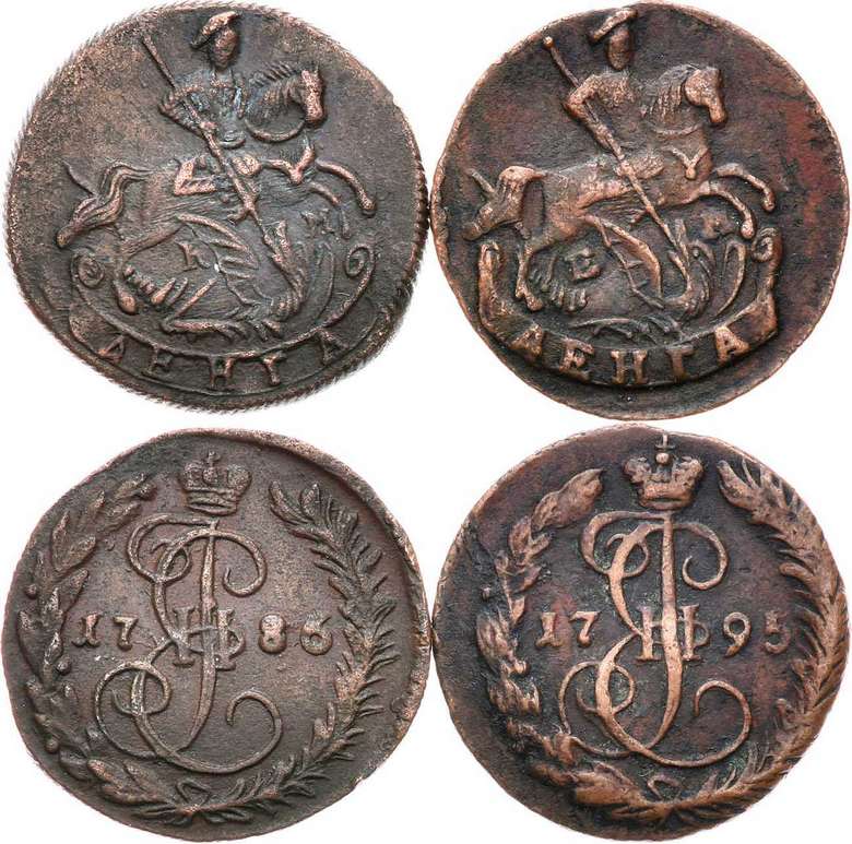 Медь. Денга 1786 года. КМ. 5,57 г. Денга 1795 года. ЕМ. 4,36 г.