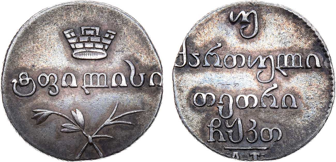 Серебро. 6,32г. Для Грузии. Тифлисский монетный двор. Уздеников 4433. Биткин 957(R). 1 рубль по Петрову. AU.