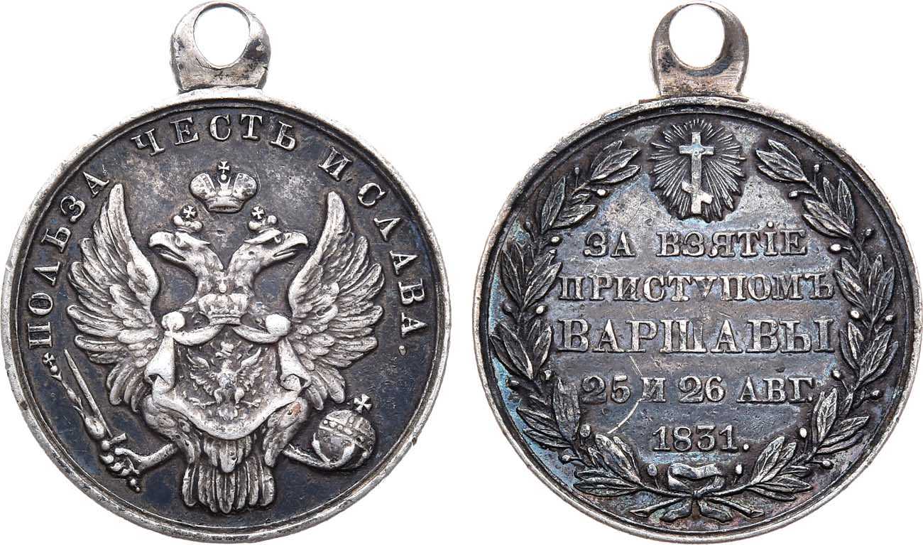 Медали 1831 года "За взятие приступом Варшавы" редки на практике в хорошей сохранности