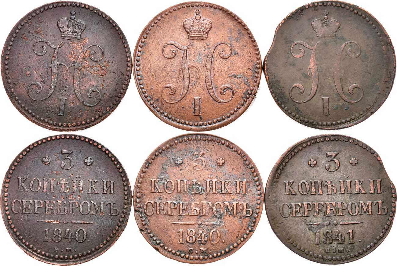 Медь. 3 копейки 1840 года. СМ. 25,90 г. 3 копейки 1840 года. ЕМ. 28,26 г. 3 копейки 1841 года. ЕМ. 30,51 г.