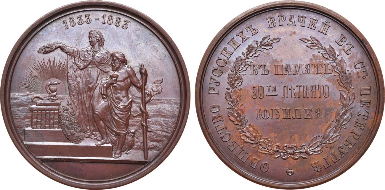 Бронза. 91,69г. Диаметр 60,3 мм. Санкт-Петербургский монетный двор. Медальер А.А. Грилихес (сын) (аверс – слева на обрезе: "ГРИЛИХЕСЪ СЫНЪ Р."). Смирнов 896. Дьяков 934.1(R0). UNC.