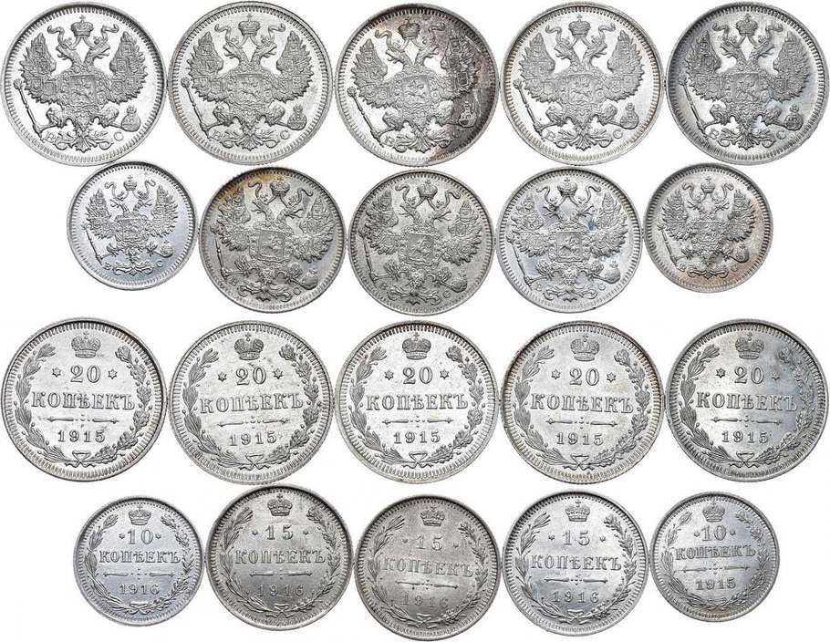 Серебро. 10 копеек 1915 ВС. Уздеников 2217. Биткин 168. Диаметр 17,5 мм. 10 копеек 1915 ВС. Уздеников 2217. Биткин 168. Диаметр 17,5 мм. 15 копеек 1916 ВС. Уздеников 2220. Биткин 143. Диаметр 19,7 мм. 15 копеек 1916 ВС. Уздеников 2220. Биткин 143. Диаметр 19,7 мм. 15 копеек 1916 ВС. Уздеников 2220. Биткин 143. Диаметр 19,7 мм. 20 копеек 1915 ВС. Уздеников 2215. Биткин 117. Диаметр 22 мм. 20 копеек 1915 ВС. Уздеников 2215. Биткин 117. Диаметр 22 мм. 20 копеек 1915 ВС. Уздеников 2215. Биткин 117. Диаметр 22 мм. 20 копеек 1915 ВС. Уздеников 2215. Биткин 117. Диаметр 22 мм. 20 копеек 1915 ВС. Уздеников 2215. Биткин 117. Диаметр 22 мм. AU-UNC.