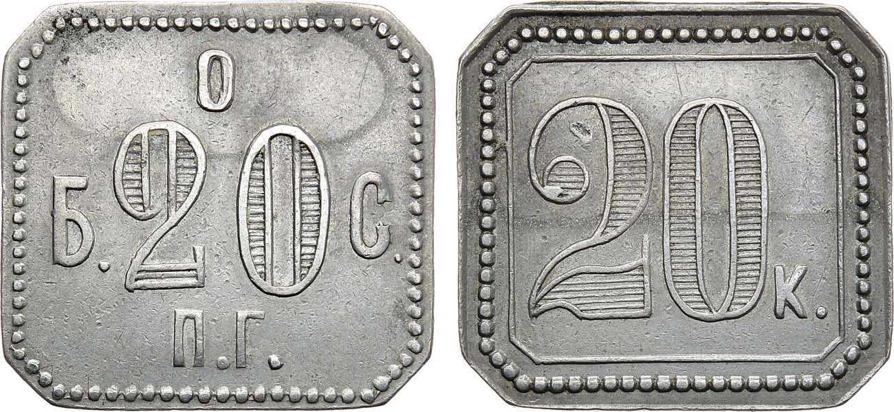Белый металл. 4,36г. Размеры 23х22 мм. Неизвестная мастерская. На аверсе аббревиатура: "Б.О С. П.Г.". Тункель 39. AU.