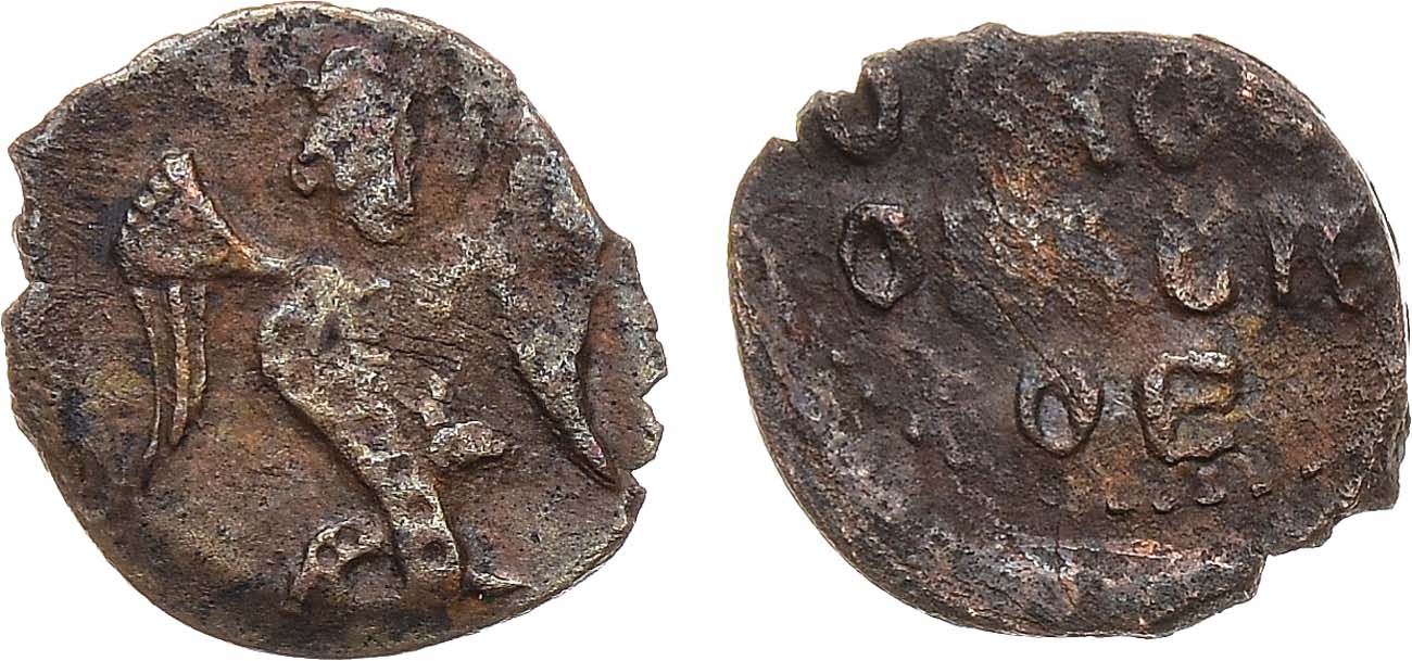 Медь. 0,44г. Аверс: русская строчная легенда. Реверс: сирена с профилем вправо. ГП2 8266C (R-IX). AU.