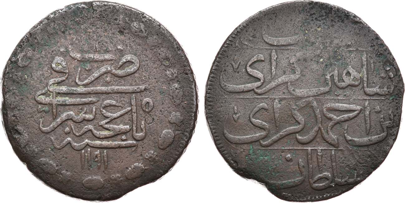 Медь. 46,75г. Кафский монетный двор. Реверс: венок из 12 больших листьев и 12 цветков против часовой стрелки. Сариев 498(R). Brekke 286, 4(•). VF.