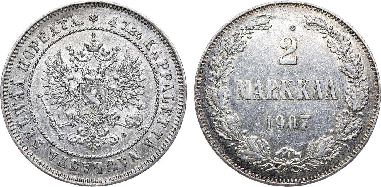 Серебро. 10,23г. Для Финляндии. Гельсингфорсский монетный двор. Уздеников 4784. Биткин 397. Казаков 334. XF+.