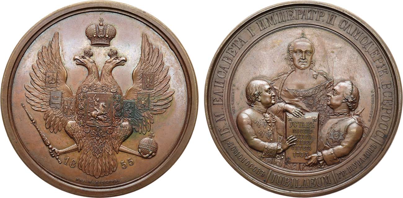 Бронза. 202,31г. Диаметр 79,2 мм. Санкт-Петербургский монетный двор. Аверс: медальер В.В. Алексеев по эскизу А.П. Лялина (слева у окружности "А. ЛЯЛИНЪ СОЧ."; справа у окружности "В.АЛЕКСѢЕВЪ Р."); Реверс: медальер М.В. Кучкин (под орлом: "РѢЗ. М. КУЧКИНЪ."). Смирнов 555. Дьяков 614.1 (R0). AU/UNC.