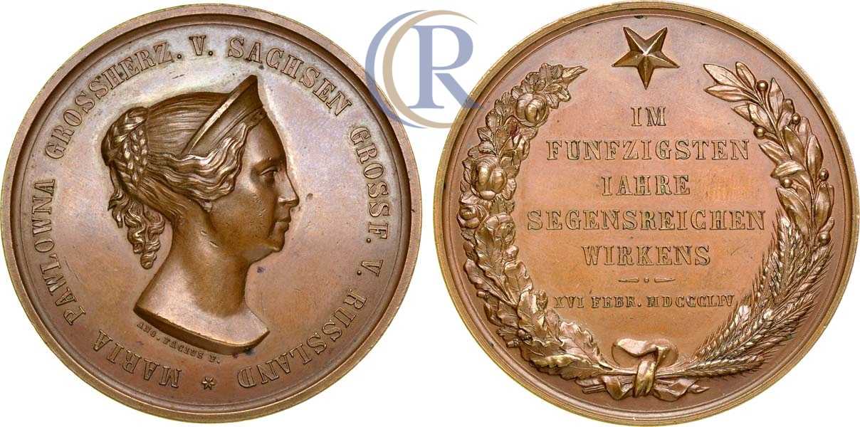 Бронза. 77,39г. Диаметр 55,4 мм. Германия, Веймар. Медальер Анжелика Фациус (аверс — под изображением: "ANG.FACIUS F."). Дьяков 611.1(R1). AUNC-UNC.