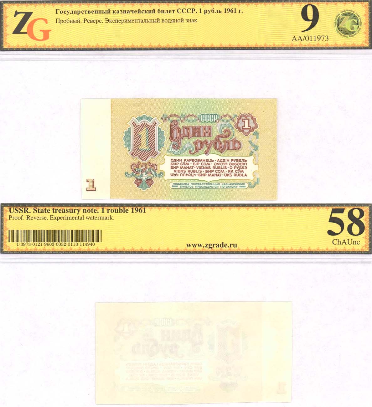 Исключительно редкий пробный отпечаток с экспериментальным водяным знаком в виде связанных окружностей. Для регулярного выпуска использовался водяной знак - звезды. Односторонний оттиск реверса (рисунок не отличается от серийного). 9/58 Choice About Uncirculated.