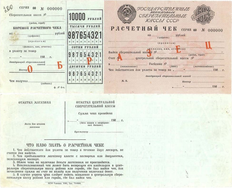 Серия 00 № 000000. С лицевой стороны надпечатка типографской красной краской по диагонали "ОБРАЗЕЦ". В комплекте с корешком. 1980-е годы. XF/XF+.