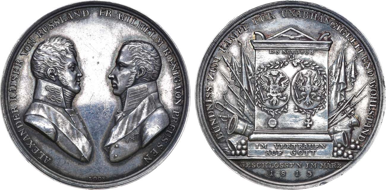 Серебро. 25,49г. Диаметр 44,5 мм. Пруссия, Берлин. Медальерная мастерская Д. Лооса (аверс - внизу под портретом "LOOS"). Дьяков 366.1(R2). UNC.