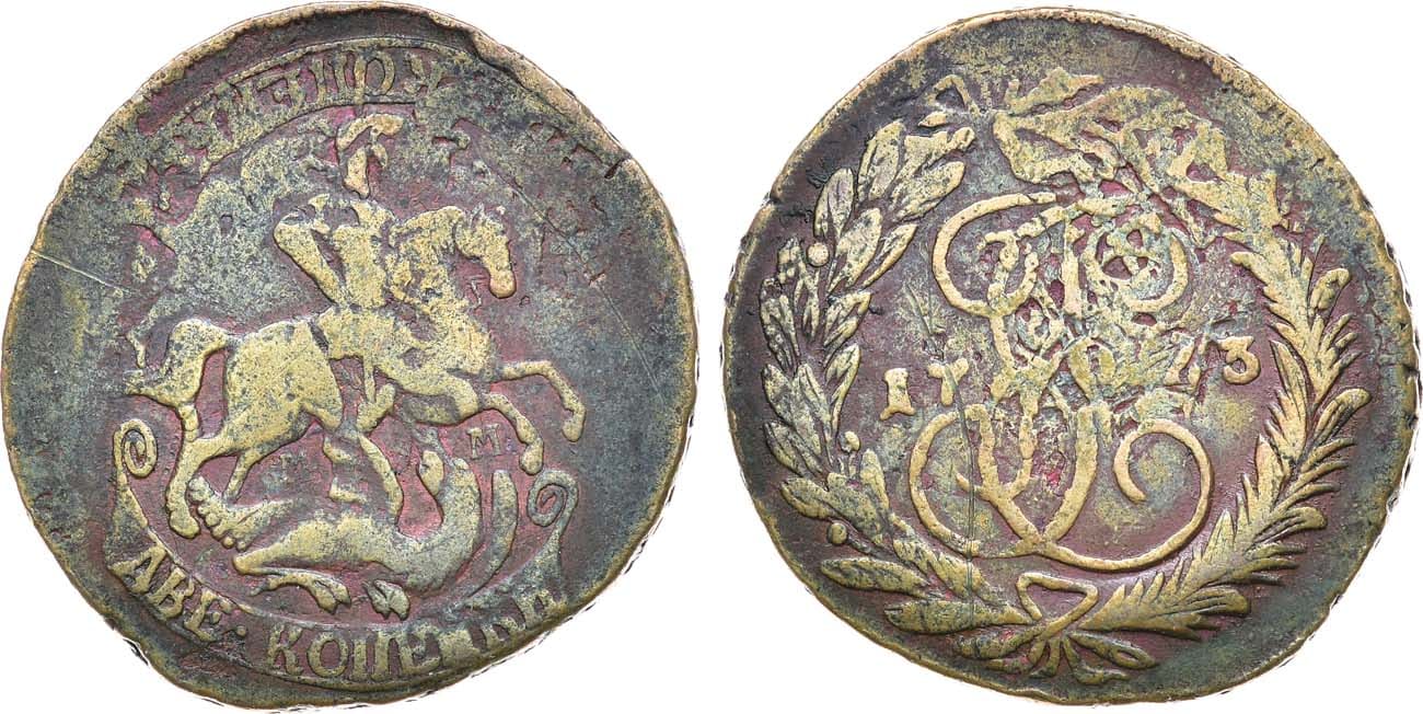 Медь. 19,34г. Красный монетный двор. Перечекан из копеек 1762 года. Уздеников 2640. Биткин 531. Дьяков 25, 34. Brekke 117, 138. VF.