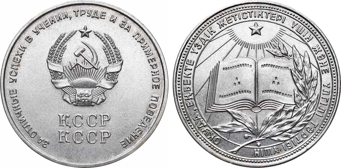 Мельхиор, серебрение. 25,50г. Диаметр 40 мм. Ленинградский монетный двор. Медаль образца 1960 года. На аверсе медали имеется круговая надпись. (Шт.3.1). Богданов, с.50. UNC.