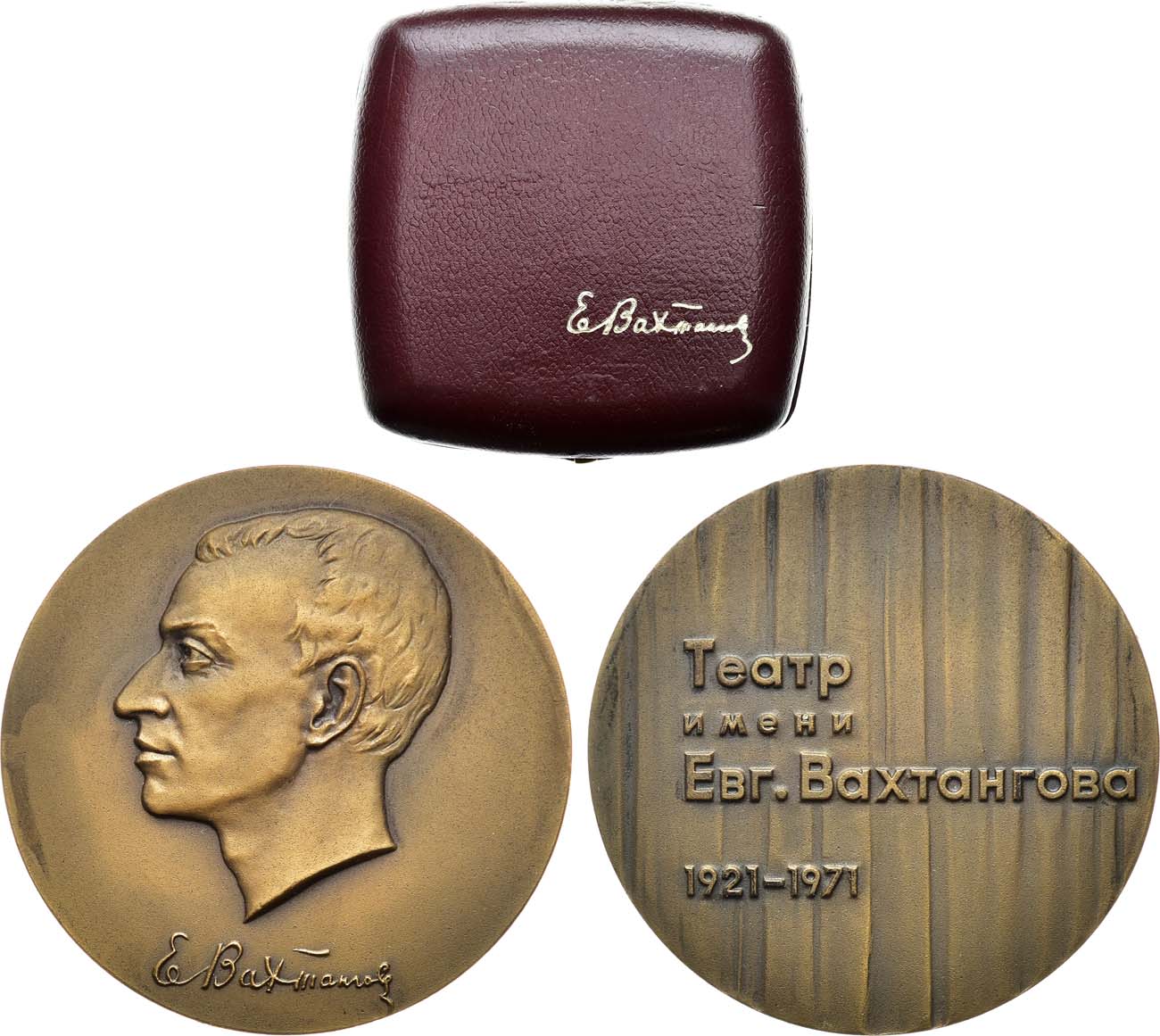 Томпак. 145,15г. Диаметр 65 мм. Ленинградский монетный двор. Медальер М.З. Фрадкин (без подписи). Вариант реверса-с датами "1921-1971" на занавесе. Тираж 403 экз. Шкурко, Салыков 672б. UNC.