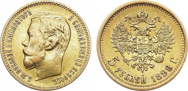 Золото. 4,28г. Аверс: штемпель 1898 года (портрет рельефный, ободок узкий). Уздеников 0329. Биткин 20. Казаков 109. AU.
