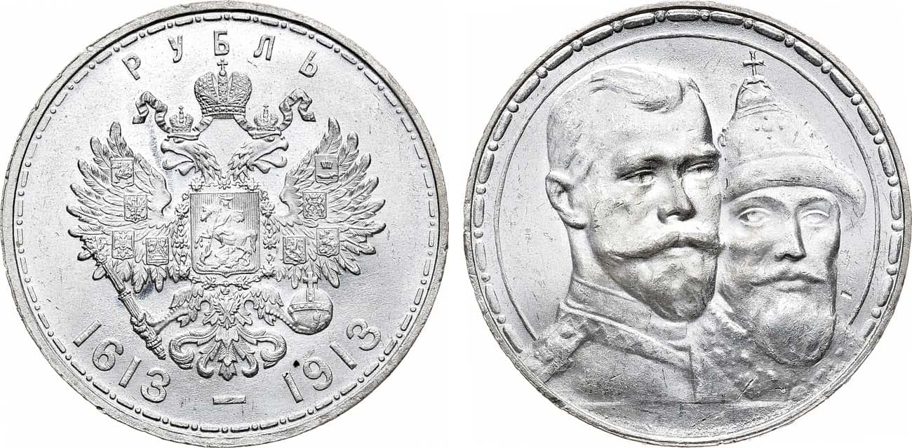 Серебро. 20,06г. Чеканен в память 300-летия Дома Романовых. Аверс: выпуклый чекан. Уздеников 4194. Биткин 336. Казаков 454. UNC.