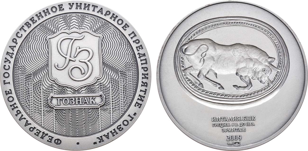 Серебро. 135,09г. Диаметр 60 мм. Санкт-Петербургский монетный двор. Клейма на реверсе: именное СПМД ("ИЛМД") и пробирное серебра 925-й пробы. UNC.