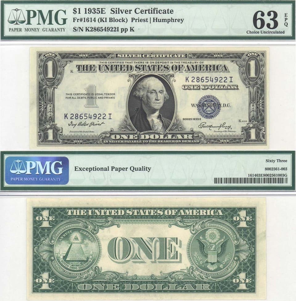 №К28654922I. Серия 1935 Е. 63 EPQ Choice Uncirculated.