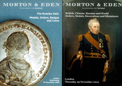 26 ноября 2008 года. Лондон. 432 лота. В том числе 30 медалей в невероятной сохранности из коллекции Томаса Димсдейла, английского медика, прибывшего в Россию в 1768 году по приглашению Екатерины II для прививки против оспы самой императрице, наследнику и кругу лиц, близких к престолу, получил звания российского барона, доктора медицины, действительного статского советника. Большая подборка советских наград. 29 ноября 2012 года. Лондон. 609 лотов. В том числе 94 лота русских наград и орденов. Среди них звезда и знак ордена Белого орла, Святого Владимира 2й степени, Святой Анны 1й и 2й степеней с короной.