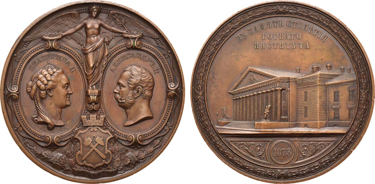 Бронза. 212,62г. Диаметр 80 мм. Санкт-Петербургский монетный двор. Аверс: медальер В.В. Алексеев (справа на фоне у окружности: "В.АЛЕКСѢЕВЪ".); реверс — А.Г. Грилихес (отец) (внизу на перевязывающей венок ленте: "А. / ГРИЛИХЕСЪ / РѢЗ"). Смирнов 723. Дьяков 802.1(R0). AU.