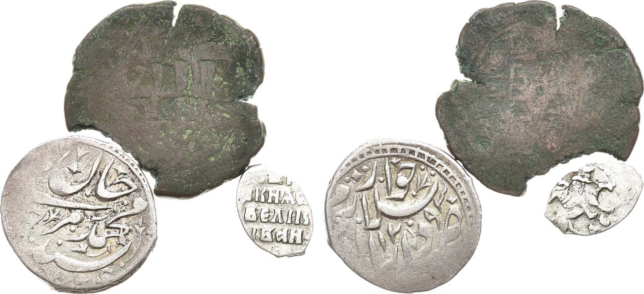 Объединённая Северо-Восточная Русь. Царь Иван IV Васильевич Грозный. Денга 1547-1584 гг. VF. Фельс. G. Хивинское ханство. 1 таньга 1877 года (1294 г.х.). XF. G/XF.