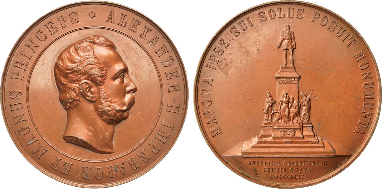 Бронза. 151,8г. Диаметр 69 мм. Гельсингфорсский монетный двор. Медальер А.А. Грилихес-сын. Аверс: в обрезе шеи "GRILICHES". Реверс: под обрезом справа у окружности "GRILICHES JUNIOR". Дьяков 1096.1(R0). AU.