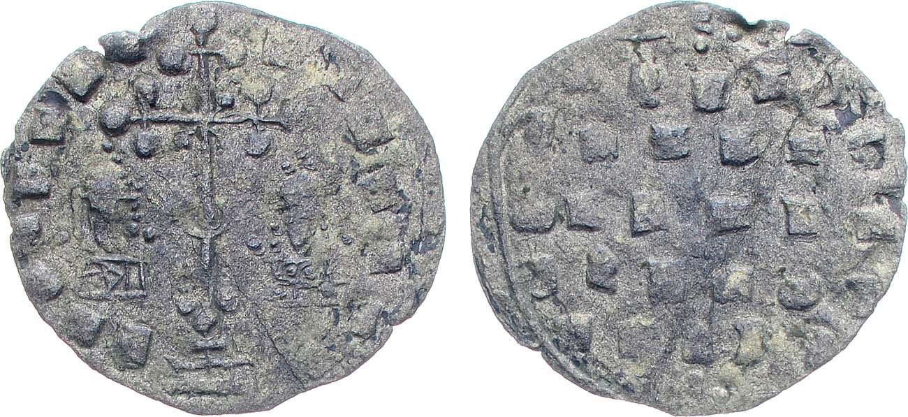 Серебро. 0,74г. Аверс: подражание милиарисиям Василия II и Константина VIII. Реверс: подражание строчной легенде, буквы представлены в виде небольших квадратиков. ГП2 52B (R-IV). XF.
