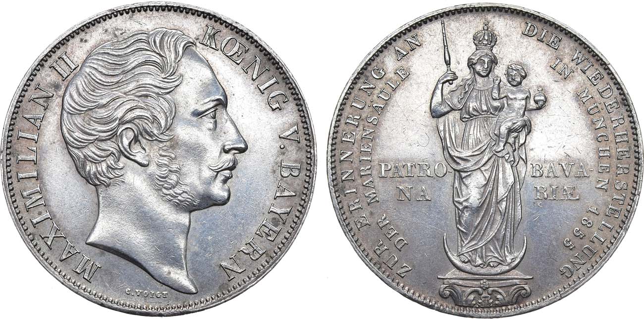 Серебро. 21,23г. Мюнхен. Отчеканена в память Восстановления колонны Мадонны в Мюнхене. Тираж: 1000000 экз. KM 848. AKS 168. Davenport 604. Jaeger 84. Thun 97. AU.