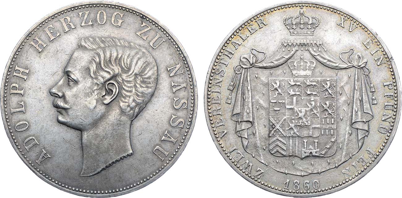 Серебро 900 пробы. 37,13г. Висбаден (В). Тираж 130064 экз. KM 76. Davenport 748. XF/AU.