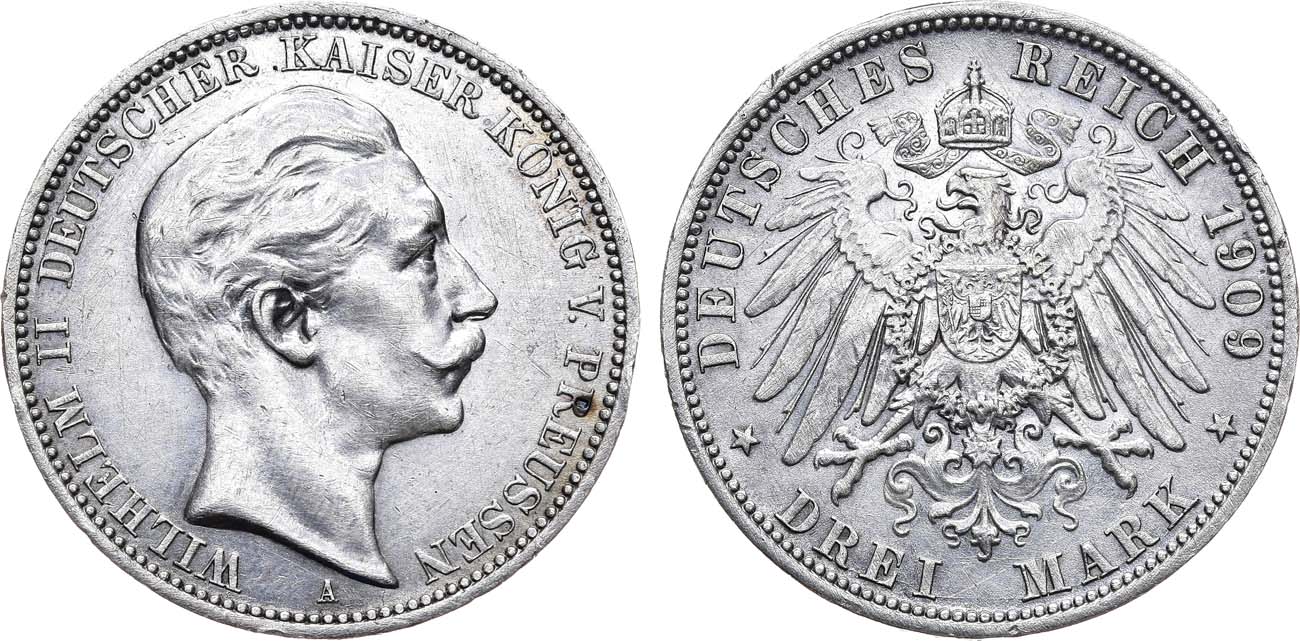 Серебро 900 пробы. 16,65г. Берлин (А). Тираж 2.858.666 экз. KM 527. Jaeger 103. Weege 102. XF.