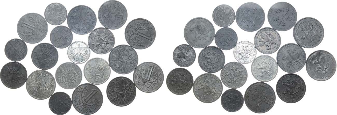 Цинк. 10 геллеров 1940, 1941, 1942, 1943, 1944 годов. Диаметр 17 мм. Jaeger 620. 20 геллеров 1940, 1941, 1942, 1943, 1944 годов. Диаметр 20 мм. Jaeger 621. 50 геллеров 1940, 1941, 1942, 1943, 1944 годов. Диаметр 22 мм. Jaeger 622. 1 крона 1941, 1942, 1943, 1944 годов. Диаметр 23 мм. Jaeger 623. XF/UNC.