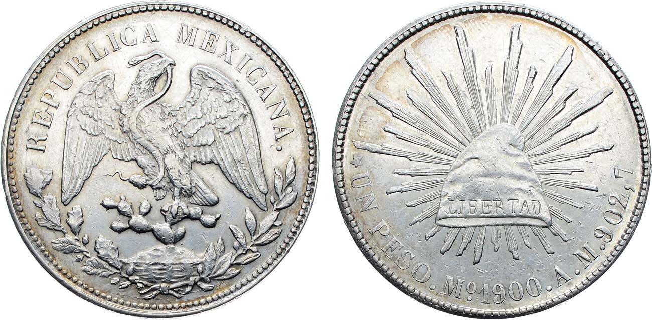 Серебро. 26,98г. Мехико (Mo). KM 409.2. AU.